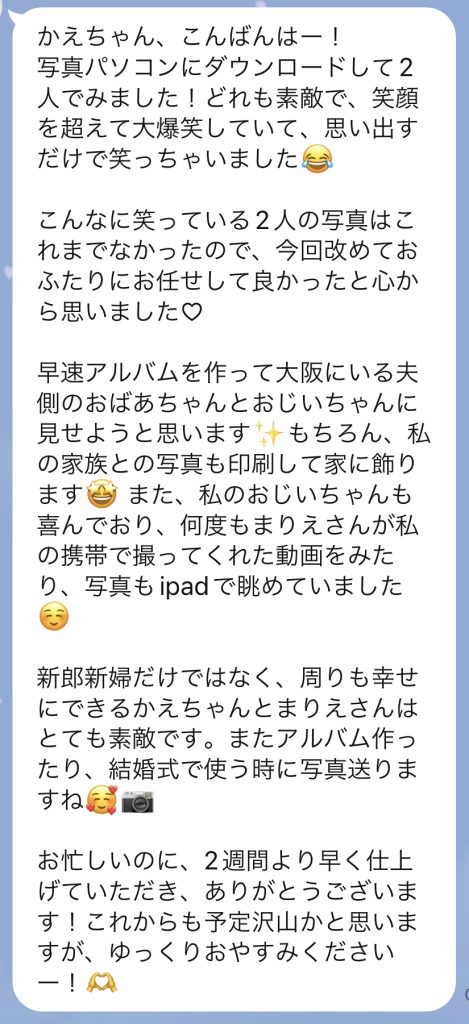 おふたりの雰囲気に合わせた優しい色味でレタッチします。